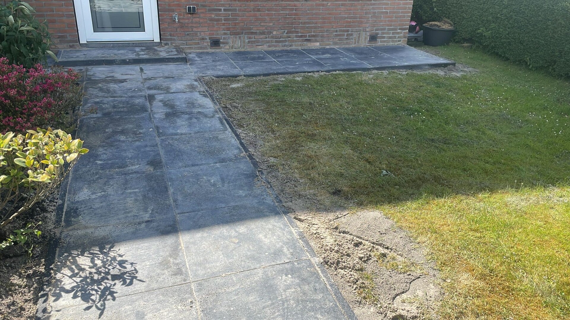 Alle stenen, tegels en natuursteen worden gelegd in zand, voor een duurzaam en stabiel resultaat. - Oplevering